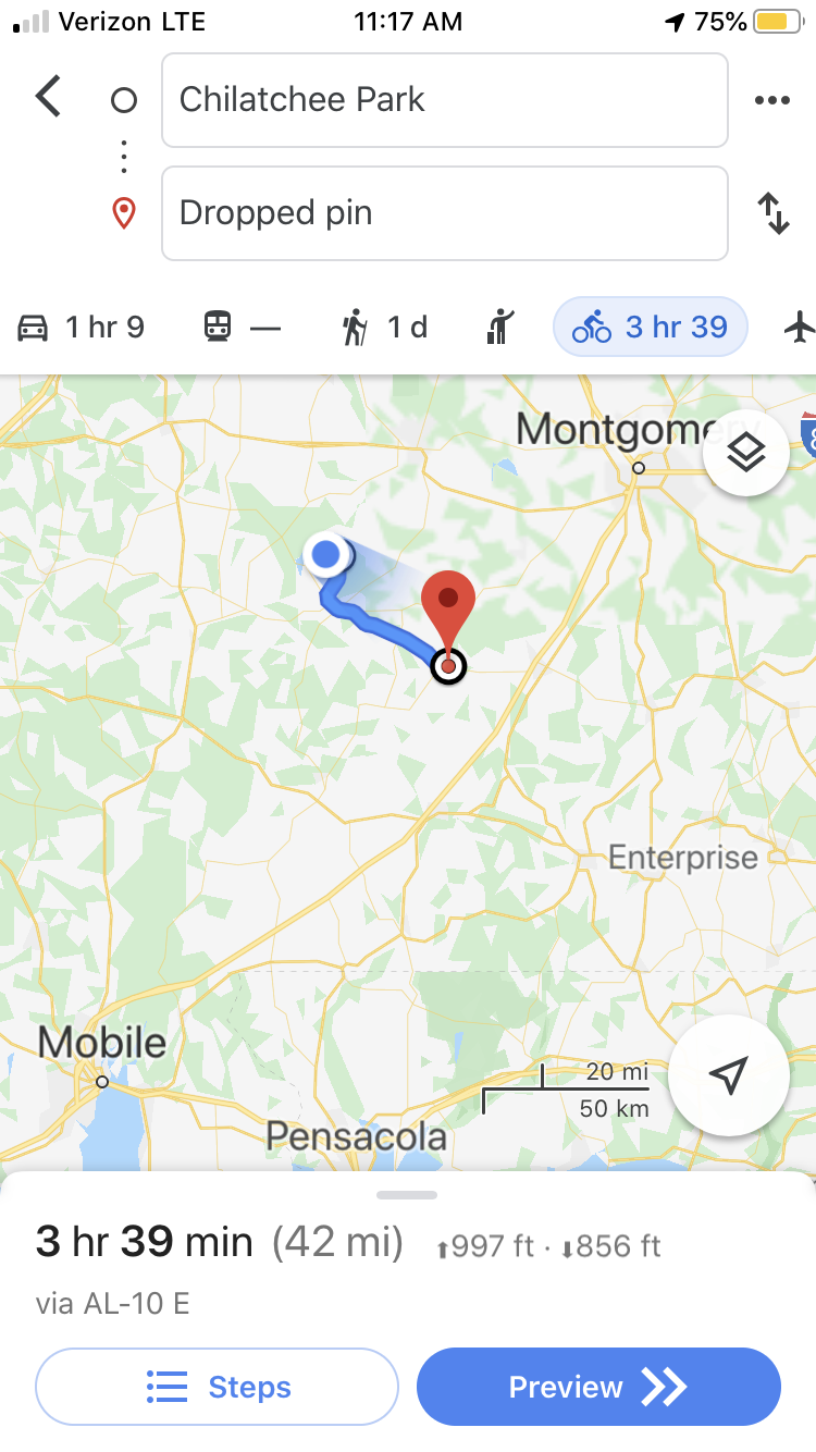 We woke up before sunrise and started getting read for the day. Our goal was to make it into Camden, a sub 3,000 person town (the biggest we have seen in a couple days) before 2:30pm to catch a ferry that could take us across the Alabama River to Chilatchee Creek Campground.